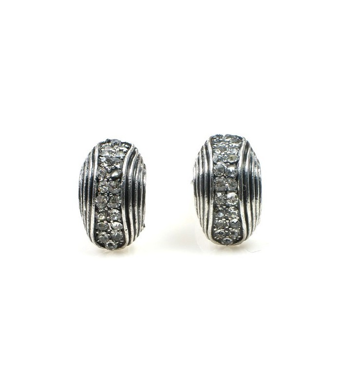 Metaalkleurige oorclips met heldere strass steentjes. Lengte van de clipoorbel is 1,5 cm.