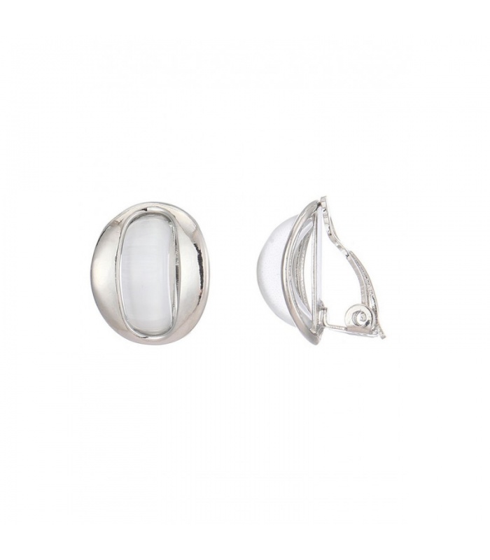 Oorclips met cat eye glaskraal in zilverkleurige zetting.