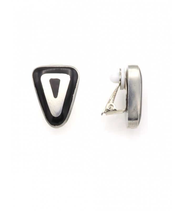 Mag jouw look een tikje stoerder? Deze zilverkleurige oorclips met zwart, zilverkleurige driehoek geven je outfit meteen een grafische stijl. De strakke lijnen en het retro design maken ze ideaal voor wie houdt van statement sieraden en vintage flair.