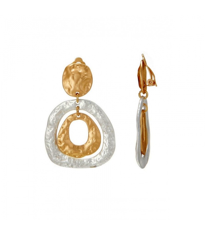 Wat maakt deze oorclips zo bijzonder? De combinatie van organische vormen in goud en zilverkleur geeft een speelse, moderne uitstraling. De gehamerde textuur zorgt voor een handgemaakte look die perfect past bij statement sieraden. Een echte blikvanger bij elke outfit.