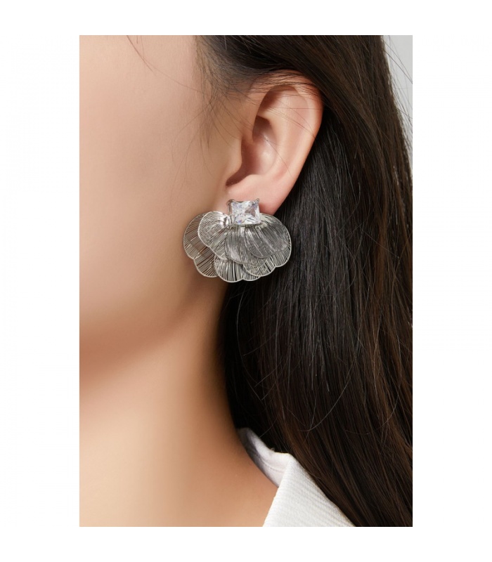 Deze oorclips combineren een bloemachtig ontwerp met een vierkant glassteentje, wat zorgt voor een verfijnde uitstraling.