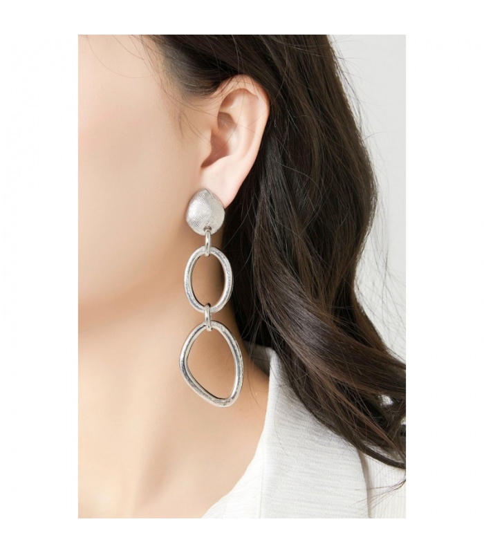 Zin in een opvallend sieraad zonder gaatjes? Deze zilverkleurige oorclip bestaat uit drie speels gevormde schakels met een subtiele textuur. De combinatie van ovale en organische vormen geeft een moderne twist aan een klassiek statement.