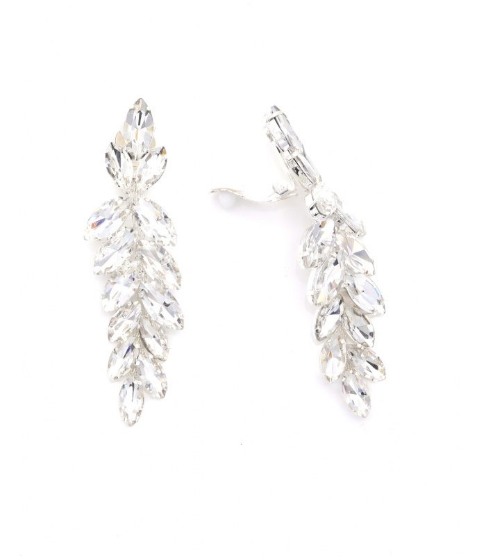 Wil je schitteren zonder overdrijven? Deze oorclips vangen het licht perfect dankzij de helder geslepen kristallen in een elegante bladvorm. Het ontwerp is glamoureus en subtiel tegelijk, ideaal voor een gala, feest of stijlvolle avondlook.