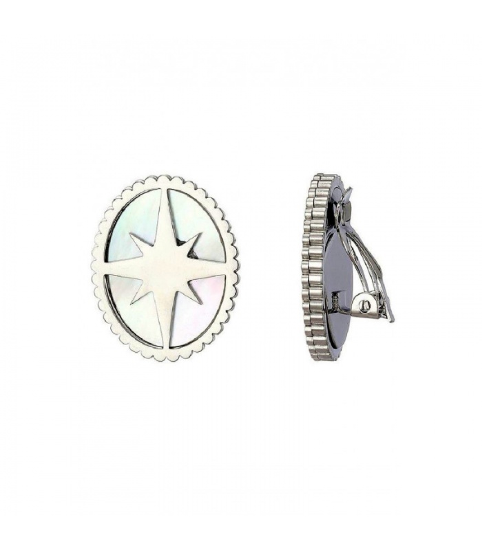 Oorclips zilverkleurige ingelegd met wit parelmoer en stermotief