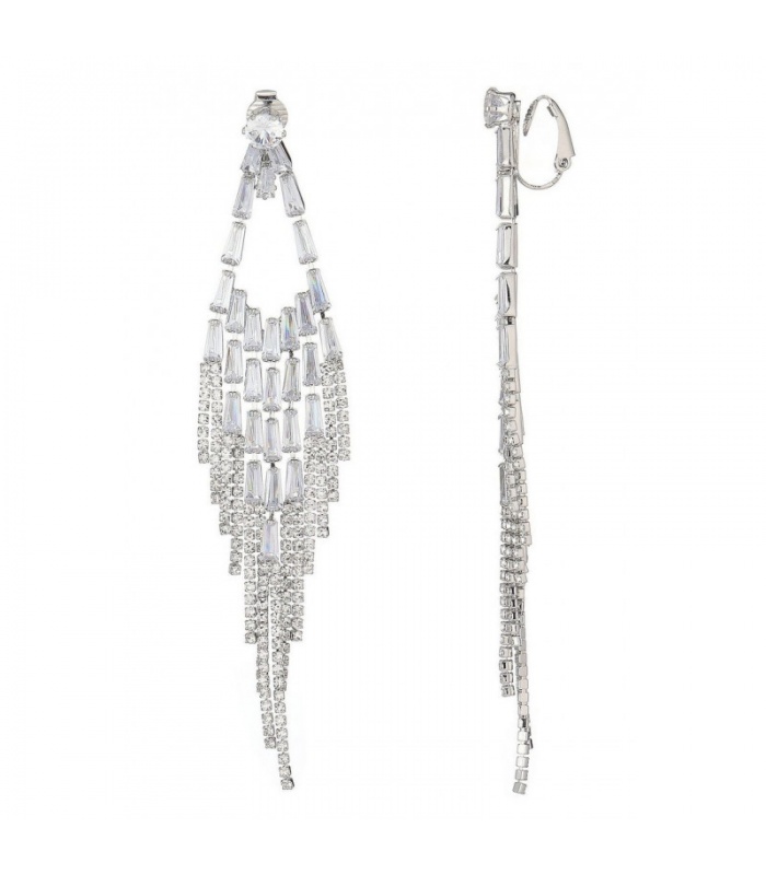 Wil je direct opvallen tijdens een avondje uit? Deze fonkelende oorclips combineren lange lijnen met een opvallend design van heldere kristallen. De glinsterende structuur weerspiegelt het licht op elegante wijze en geeft elke outfit een luxueuze touch. Perfect voor wie houdt van statement oorbellen zonder gaatjes.