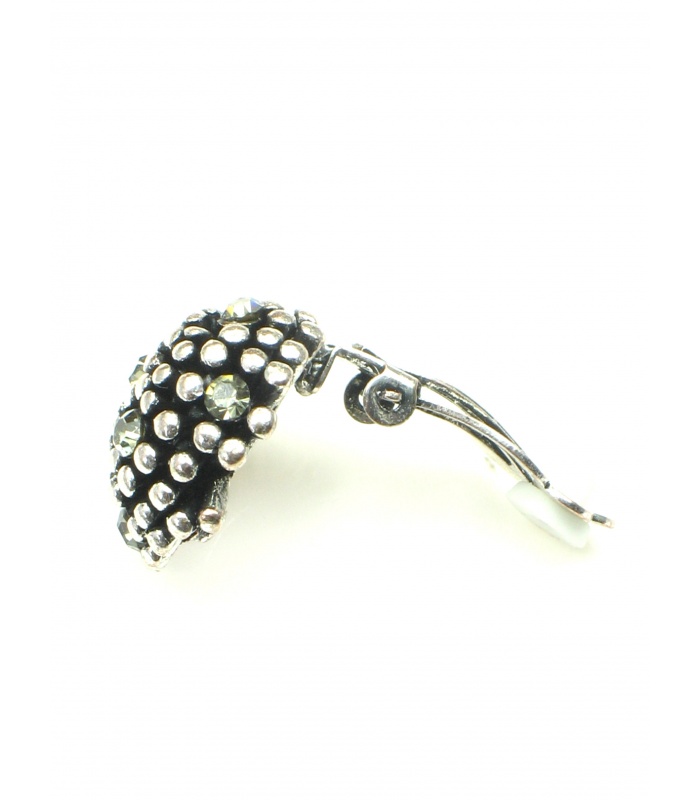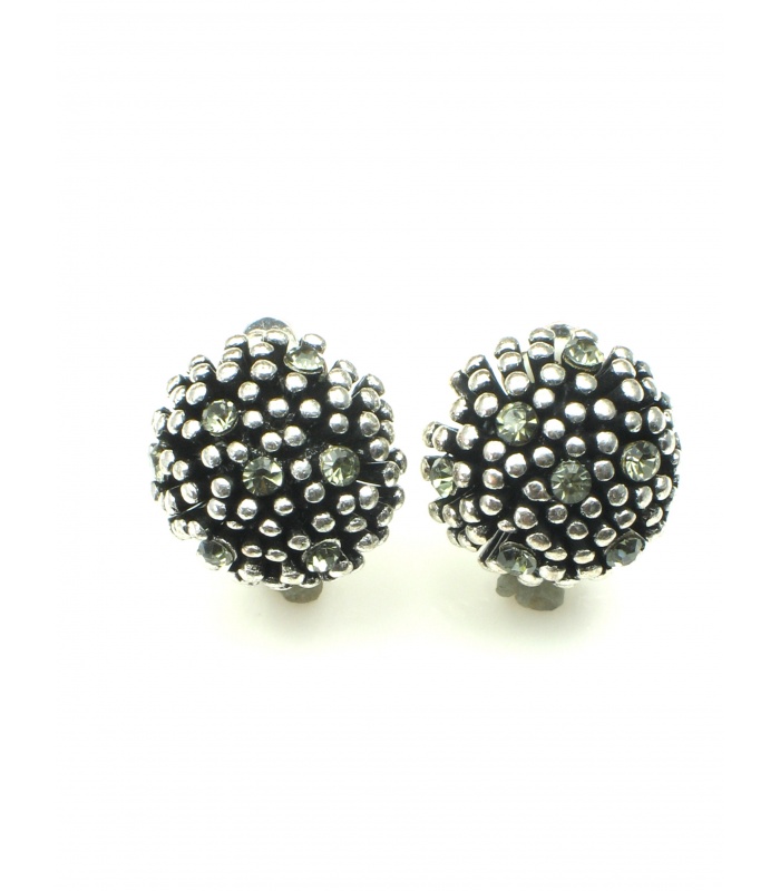 Ronde zilverkleurige metalen oorclips met strass steentjes.