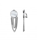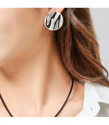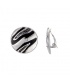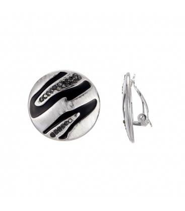 Zilverkleurig oorclips met zwarte strepen en strass steentjes.