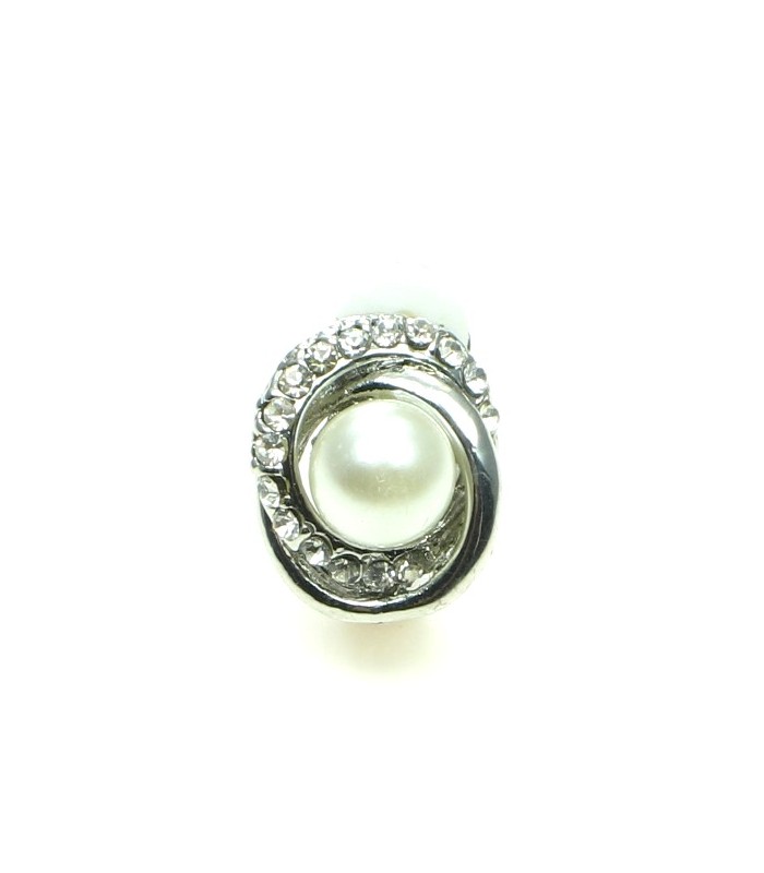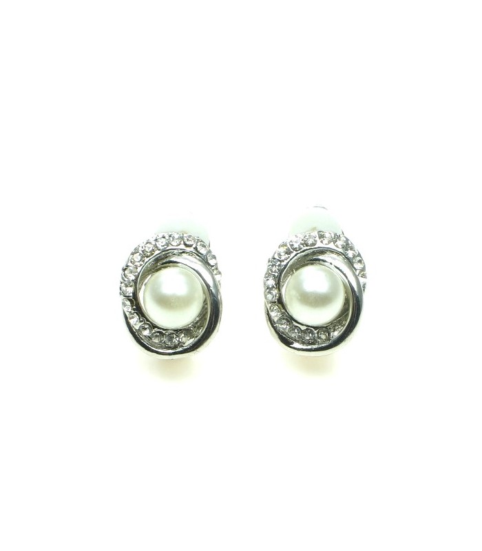 Zilverkleurige clipoorbellen met strassrand en halve kunstparel. De achterzijde van de oorclips is zilverkleurig. De lengte van de oorclip is 1,2 cm.