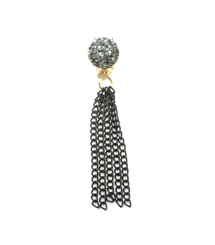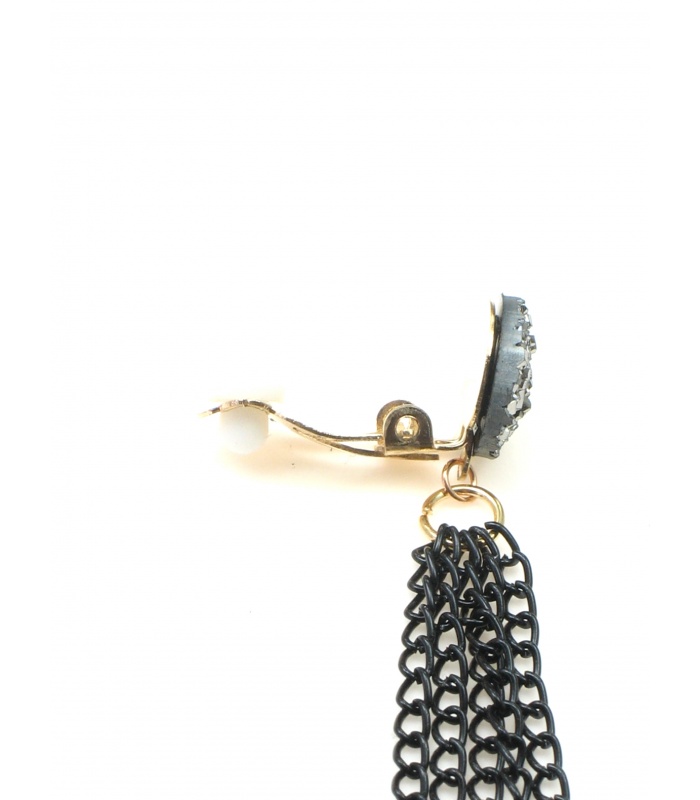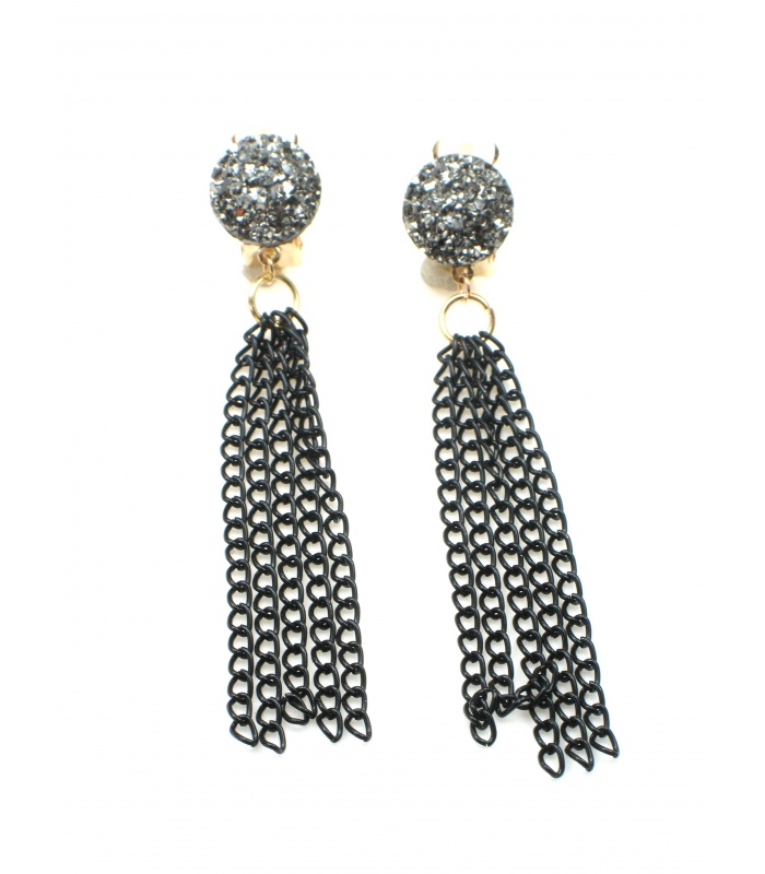 Zilverkleurige langwerpige oorclips met 5 zwarte jasseron strengen