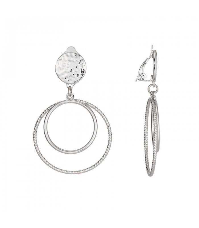 Zilverkleurige oorclips met 1 bewerkte cirkel en 1 gladde cirkel