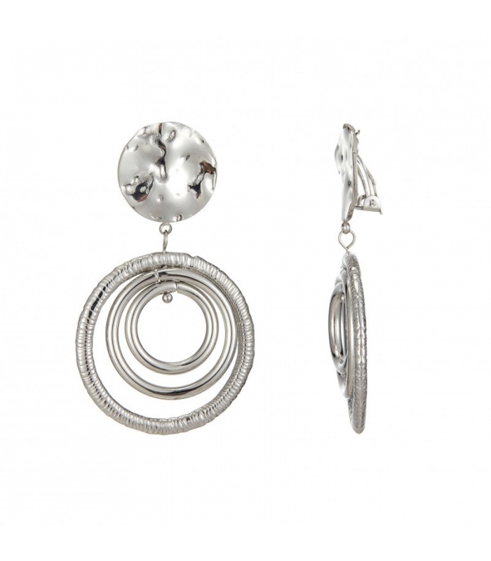 Zijn deze oorclips de eyecatcher voor jouw look? Absoluut. De dynamische cirkels in hoogglanzend zilverkleur geven direct een futuristische touch. De ruwe structuur van het bovenste element zorgt voor contrast en karakter. Perfect bij een strakke outfit of monochrome look.