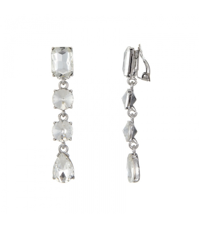 Zilverkleurige oorclips met heldere glas stenen in verschillende vormen