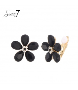 Oorclips met bloemvorm en zwarte rubber franjes. De lengte van deze oorclip is circa 10 cm. Voor oren zonder gaatjes. De klemoorbellen zijn nikkelvrij. De oorclips zijn voorzien van zachte rubbertjes.