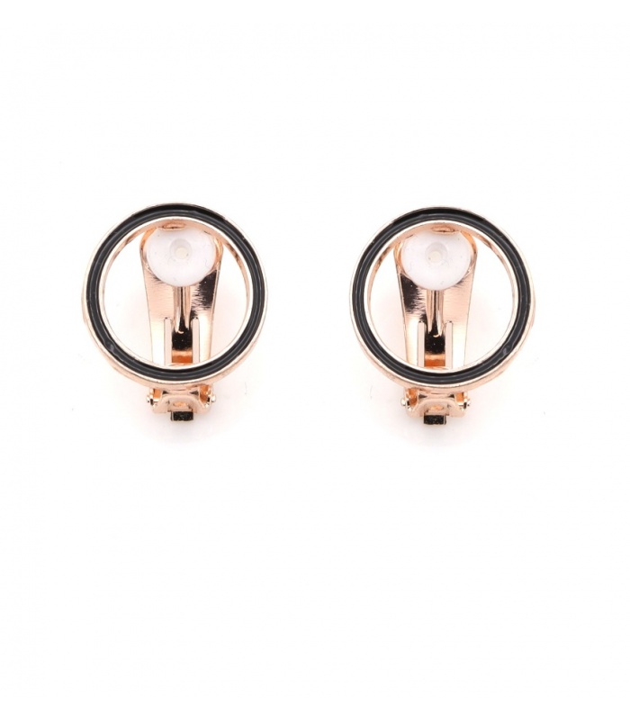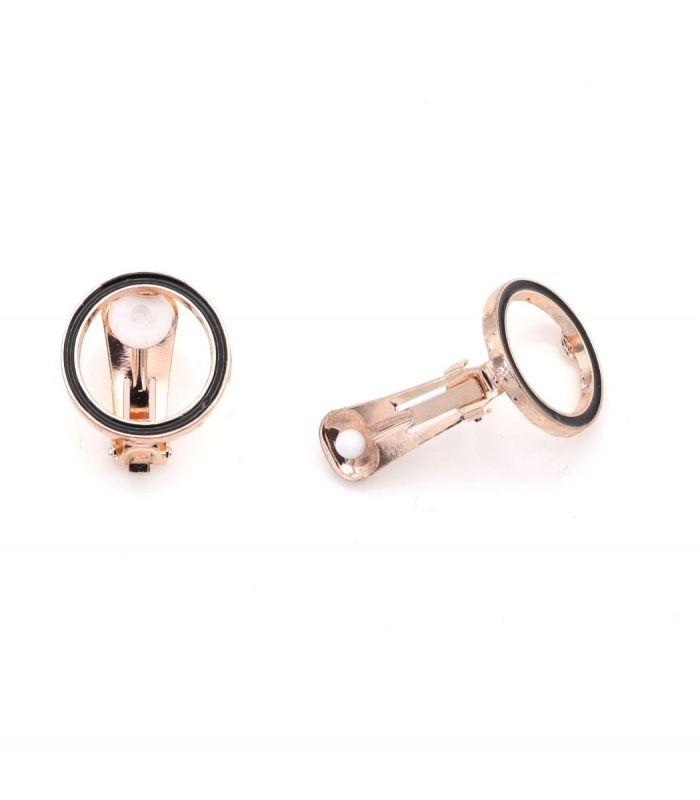 Zoek je een stijlvolle oorbel zonder gaatjes? Deze oorclips geven het antwoord. De ronde vorm met zwarte cirkelrand en roségoudkleurig metaal oogt modern. De oorbellen sluiten stevig en geven een strakke fashion look, perfect als statement oorbellen bij elke outfit.