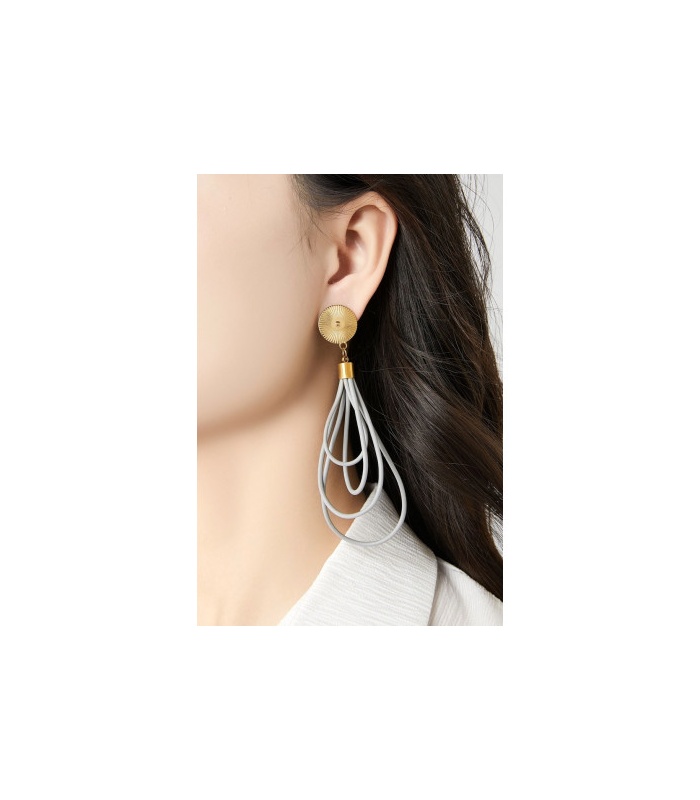 De flexibele rubberlussen creëren een opvallende vorm zonder zwaar te zijn. De geribbelde clip geeft een subtiel retro accent. Perfect bij een zwarte outfit of als contrastrijk accessoire bij kleur. Licht om te dragen, groot in effect.