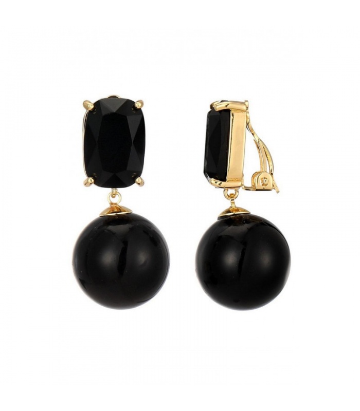 Hoe maak je een statement zonder overdaad? Deze oorclips doen dat met een diepe zwarte steen en een glanzende bolvormige hanger. De combinatie met goudkleurige accenten geeft de oorbellen een krachtige en stijlvolle uitstraling. Ideaal voor een avondlook of als sterk detail bij een minimal outfit.