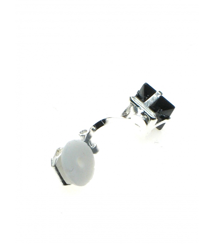 Oorclips met zwarte vierkante strass steen (6 mm) in zilverkleur zetting.