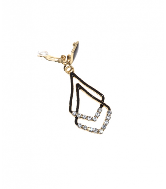 Deze oorbellen vallen op door de dubbele hanger en zwarte stras accenten. De klem zorgt voor stevig draagcomfort, dankzij zachte rubbertjes. Ideaal voor wie geen gaatjes heeft en toch wil schitteren. Strass en clip-on trends geven een luxe touch
