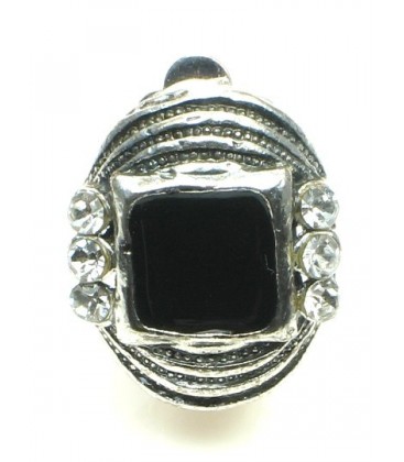 Ovale zwarte oorclips met heldere strass steentjes