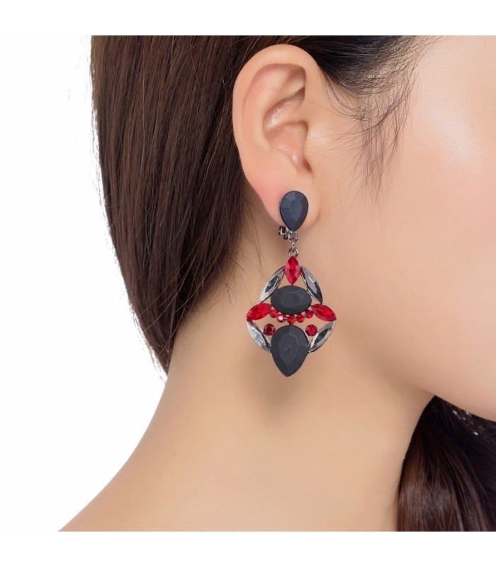 Bestel vandaag nog deze prachtige zwart met rode oorclips gemaakt van hars met rode kristal steentjes en voeg een vleugje elegantie toe aan jouw look!