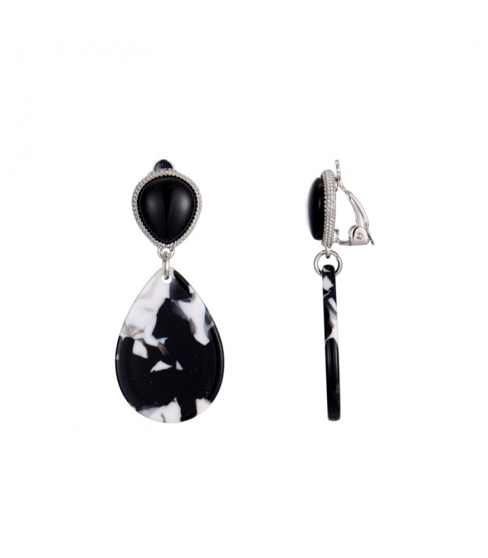Creme oorclips met een wit dessin in...