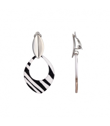 Zwart wit gestreepte oorclips met een zilverkleurig oorstukje