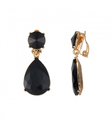 Zwarte oorclips met glas stenen en in goudkleurige setting