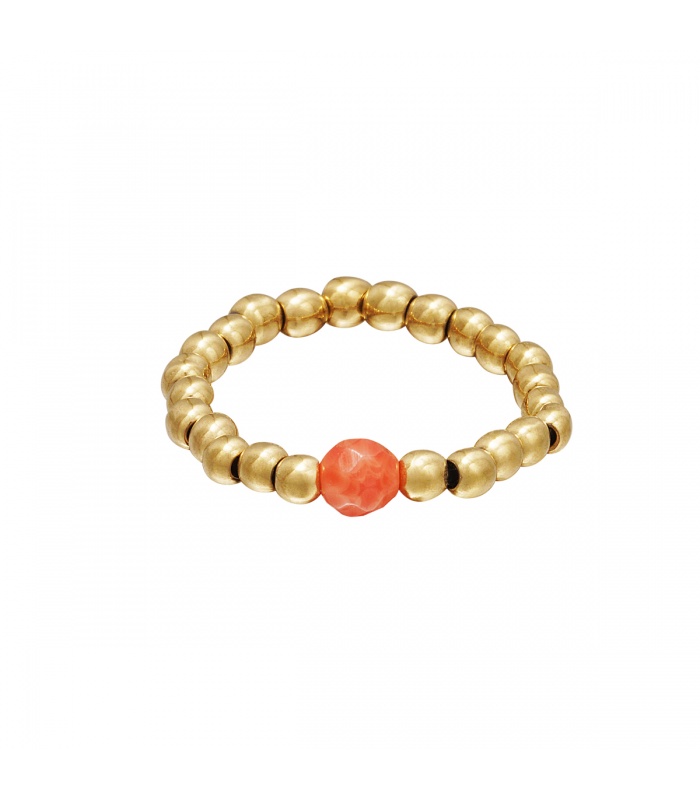 Teenring met goudkleurige kralen en ronde oranje steen