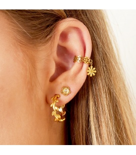 Zilverkleurige ring met een rij van cirkels en een zirkoonsteentje (16). De ring is gemaakt van stainless steel. Maat 16. De ring is van het merk Yehwang.