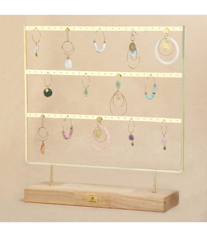 Goudkleurige displayrek dat ruimte biedt voor 72 oorbellen (36 paar)