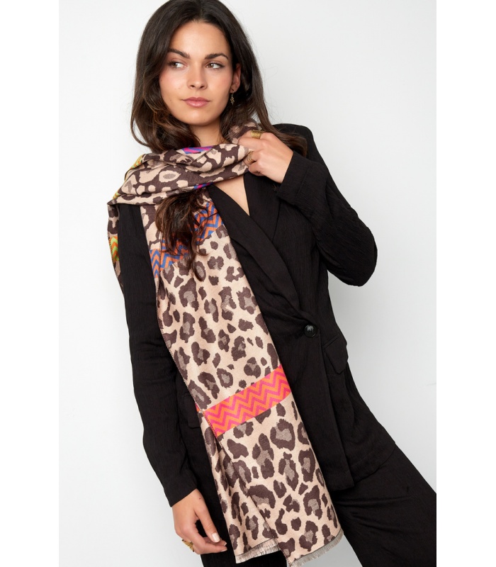 Deze elegante beige sjaal combineert warmte met een verfijnd patroon, ideaal voor koude dagen. Het design varieert van klassieke strepen waardoor je met gemak een stijlvolle look creëert. Gemaakt van zachte, comfortabele materialen zoals viscose, biedt deze sjaal een fijne mix van comfort en elegantie. Met een royale lengte kun je hem op verschillende manieren dragen, of het nu om je nek gewikkeld is of losjes over je schouders.