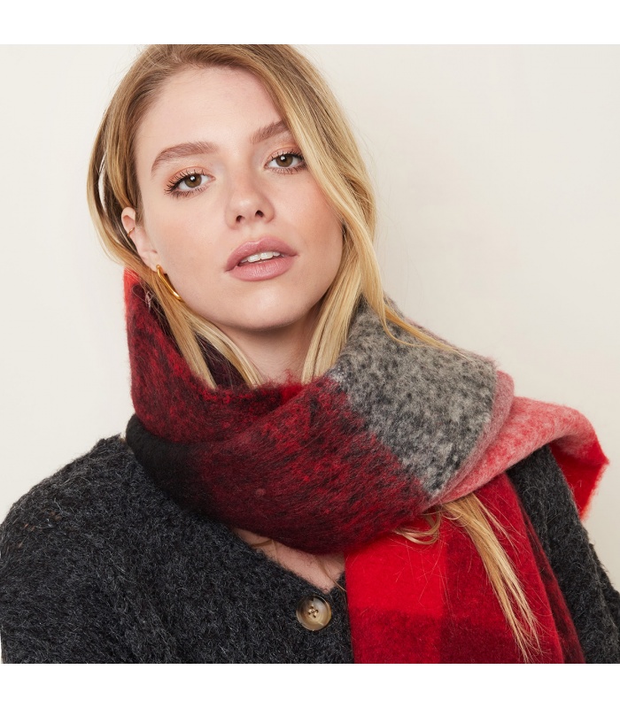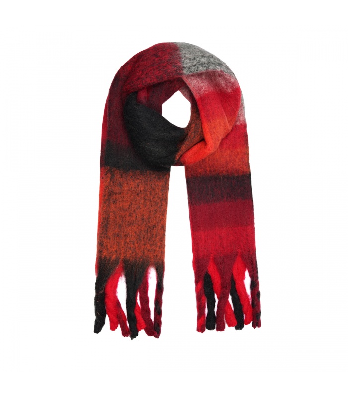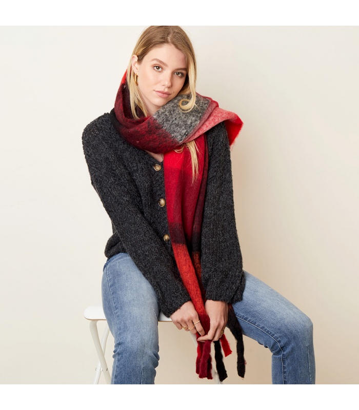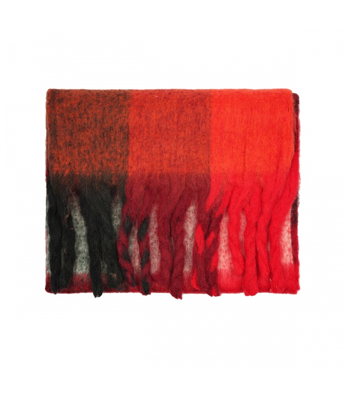 Kan een sjaal zowel praktisch als een eyecatcher zijn? Absoluut. Deze sjaal combineert opvallende rood en zwarttinten in een krachtig kleurverloop dat elke winterlook nieuw leven inblaast. De zachte, wollige textuur biedt directe warmte en comfort. Ideaal voor wie graag een uitgesproken accessoire draagt.