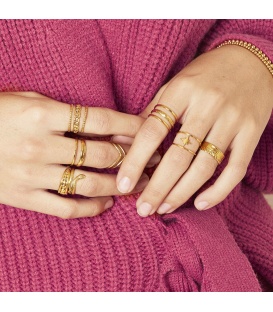 Goudkleurige organisch gevormde ring. De ring is in maat verstelbaar. Nikkelvrij. De ring is van het merk Yehwang.