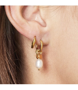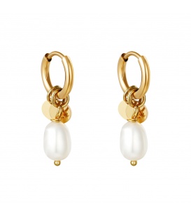 Goudkleurige oorringen met zoetwaterparel. De lengte van deze oorbel is 2.30 cm. Voor oren met gaatjes. Nikkelvrij.