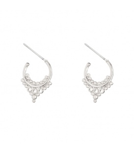 Zilverkleurige oorringen met bungelende parels. De lengte van deze oorbel is 2.40 cm. Voor oren met gaatjes. Nikkelvrij.