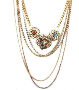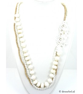 Wit met goudkleurige 3 strengs halsketting met kanten bloem